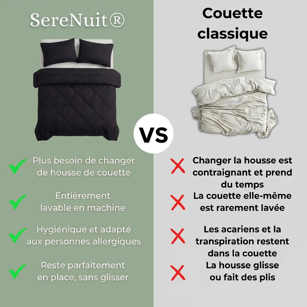 La couette SereNuit® combine couette et housse en un seul produit.