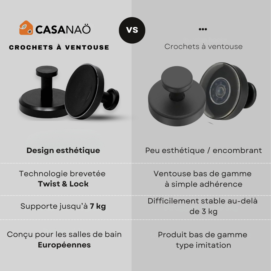 Les crochets à ventouse CASANAÖ sont conçus pour offrir une fixation fiable et durable, sans perçage.