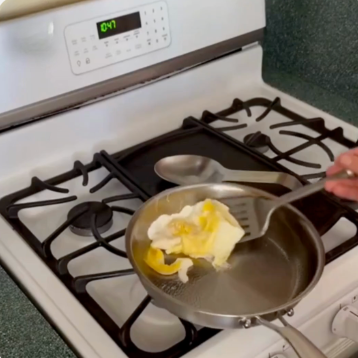 Lavez la poêle, chauffez-la quelques instants à feu moyen, puis ajoutez un léger filet d’huile avant cuisson afin d’optimiser l’antiadhérence naturelle du titane.